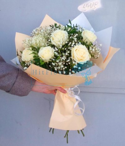 Букет Белые розы в зелени